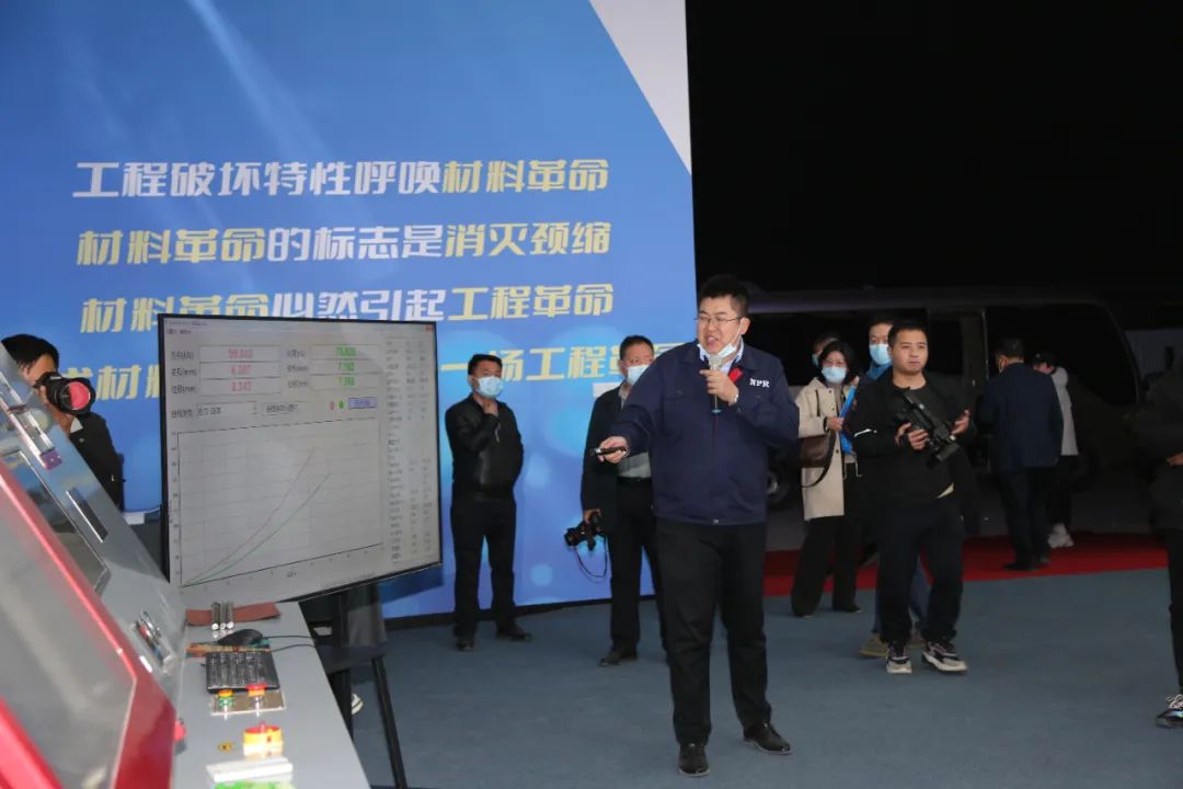 朱国龙博士为专家组一行介绍了NPR材料的性能优势,并现场演示了NPR新材料与普通材料的对比拉伸测试试验。